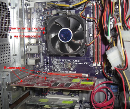Почему компьютер шумитТут всё просто. Со временем любая механическая часть изнашивается, расшатывается, а ещё любая вращающаяся деталь требует смазки. И как показывает практика шум вентилятора компьютера связан именно с тем, что пришло время добавить смазки. Я не знаю может быть есть и ещё причины почему компьютер шумит, но я пока других причин не встречал. Если, кто знает, пишите в комментарии, очень бы хотелось узнать о других случаях. Как уменьшить шум кулера (вентилятора). Смазка кулера процессора.Вообще, чтобы не вводить ни кого в заблуждение, небольшой шумок есть у всех компьютеров. И это нормально, он иногда напоминает некое дуновение ветра при сквозняке. В этой статье я описываю тот случай, когда из ПК доносится типа: ж-ж-ж-ж!Сегодня на современных компьютерах может быть как минимум три вентилятора: в блоке питания, на центральном процессоре и на процессоре . Когда я снял боковую крышку, своего ПК и прислушался к жужжанию, то понял, что рокот исходит от вентилятора (кулера) видеокарты. Когда виновник проблемы установлен, приступаем к устранению жужжания. Шум кулера, который непосредственно находится на ЦП, убирается аналогичным образом.Внимание!!! Описанные ниже действия производятся после отключения компьютера от источника питания !!!Итак аккуратно вынимаем из слота видеокарту.